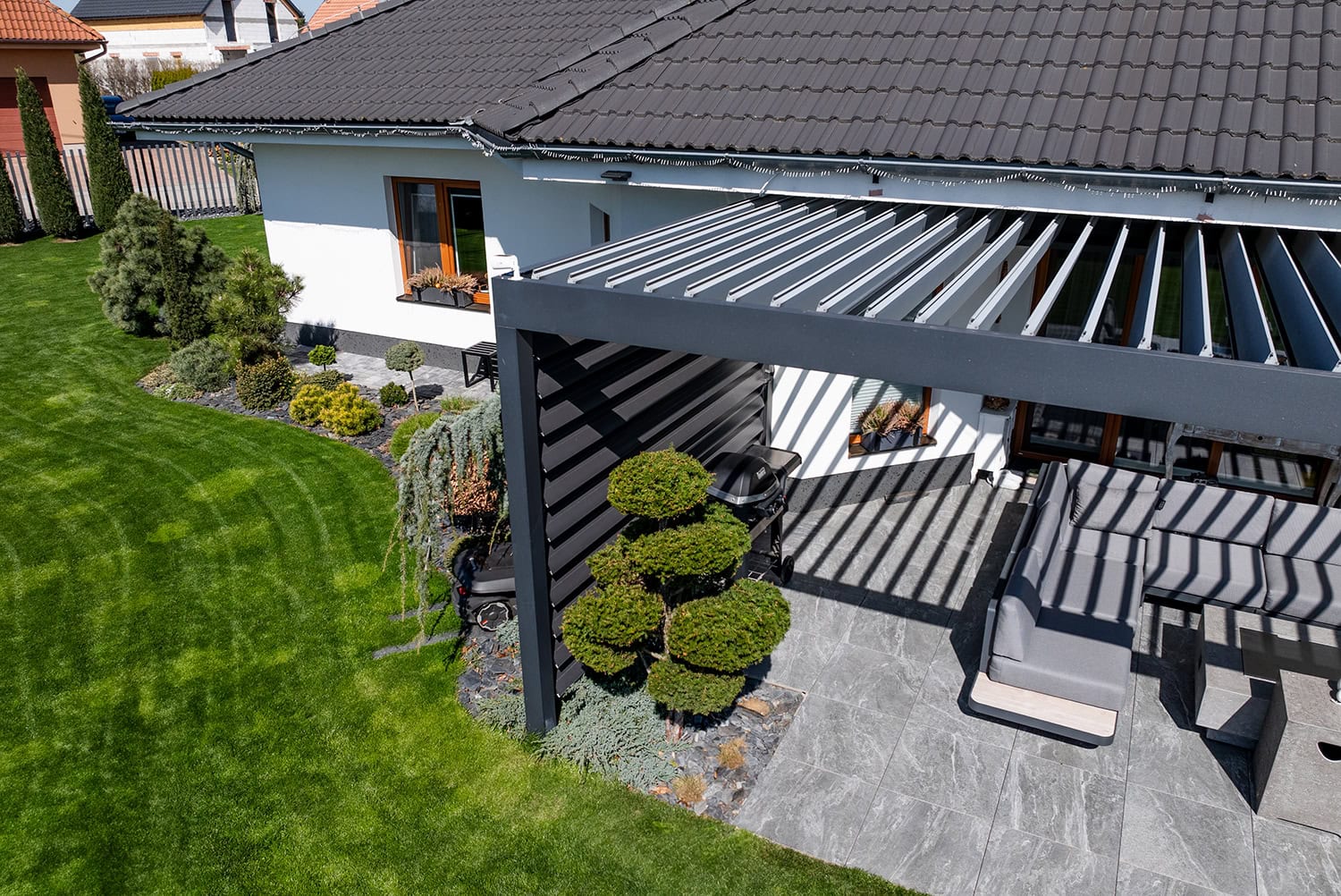 Naše pergoly i přístřešky vyrábíme kompletně v dílně v Blučině u Brna. Od návrhu hliníkových profilů, přes milimetrové řezání na CNC strojích, až po finální montáž máme vše pod kontrolou. Díky tomu garantujeme kvalitu, přesnost a dlouhou životnost – a vy se můžete soustředit na to hlavní: užívat si pohodlí vlastní pergoly.