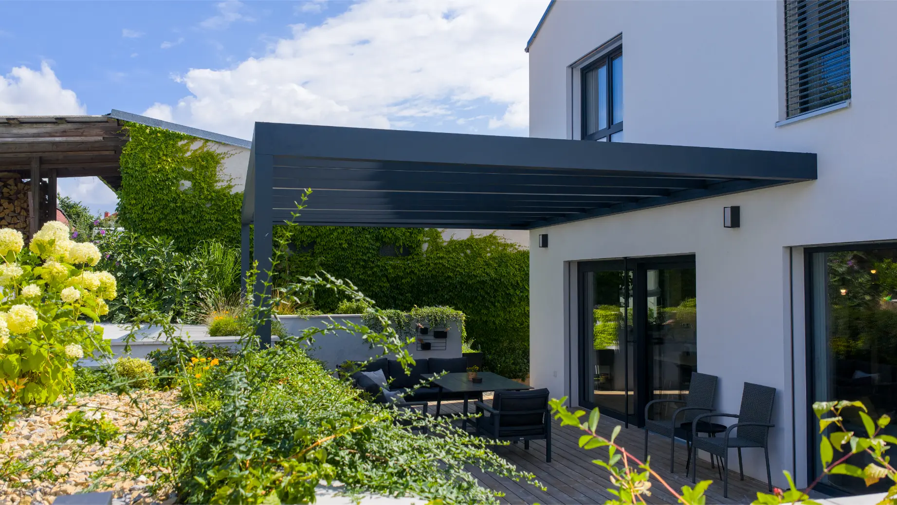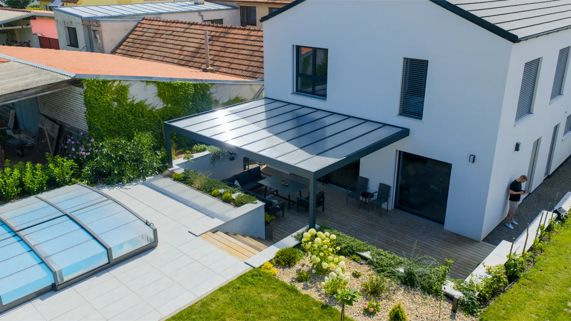 Pergola ALUX Carbo je postavená na stejné konstrukci jako pergola ALUX BIOclimatic.