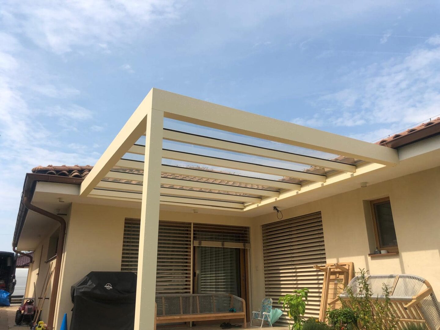 Možnost doplnění stěn pergoly o screenové rolety či posuvné bezrámové zasklení