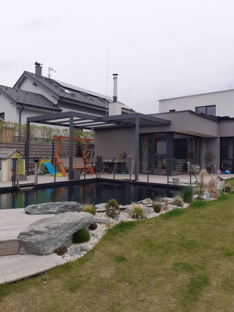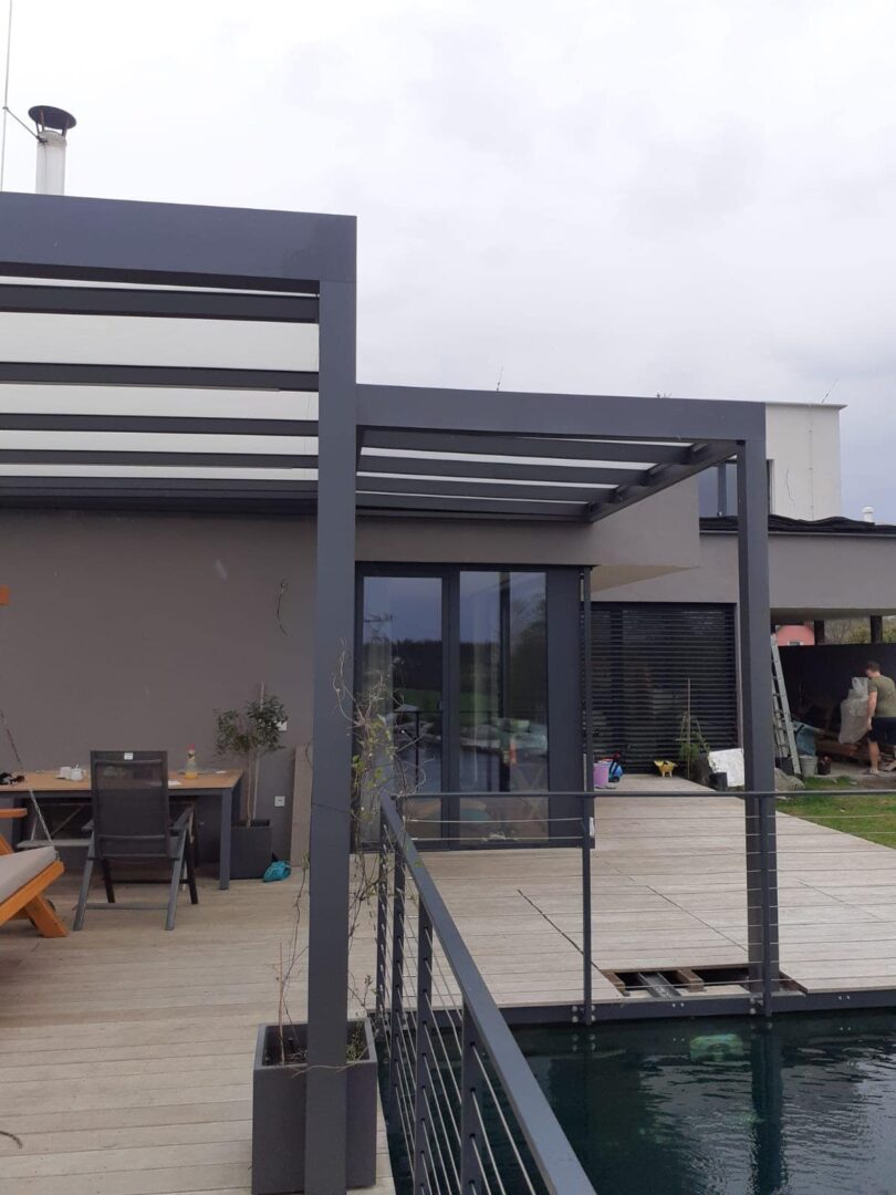 Možnost doplnění stěn pergoly o screenové rolety či posuvné bezrámové zasklení