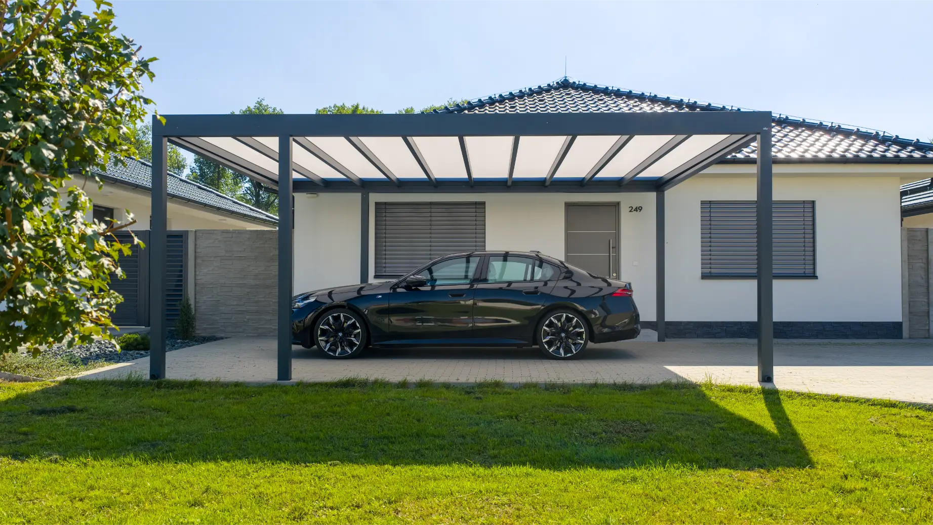 Plochá střecha s šedým dutinkovým polykarbonátem